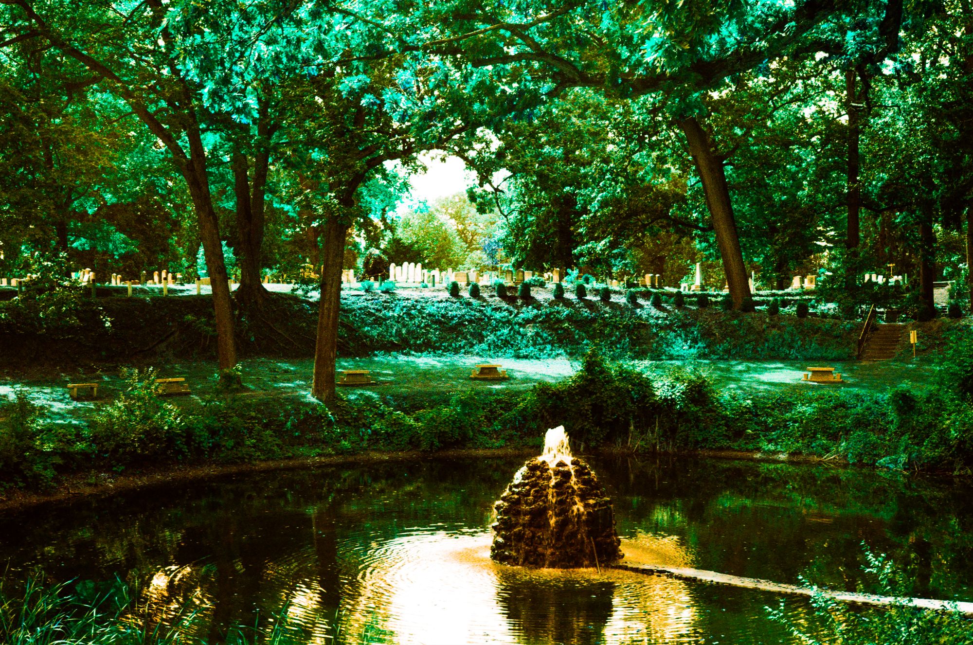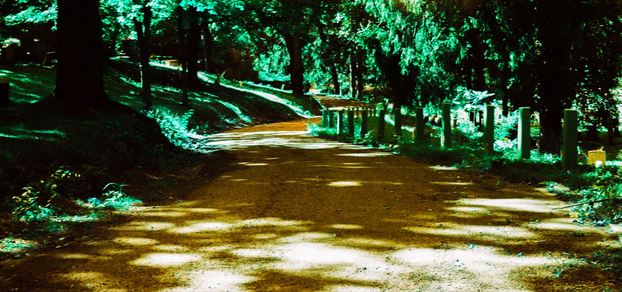 I decided then and there that red-scale is best suited for urban areas. However, I began to wonder what may be best for a place with more green in it. Eventually, I had found that my local photo store carried Lomochrome Turquoise, a film stock promising yellow skies and, well, turquoise vegetation. I grabbed a roll, and gave it a go. The box suggests to shoot at anywhere between 100 – 400 ISO. Obeying the box gives what you’d expect, green gone turquoise. Below was shot at 400 ISO.